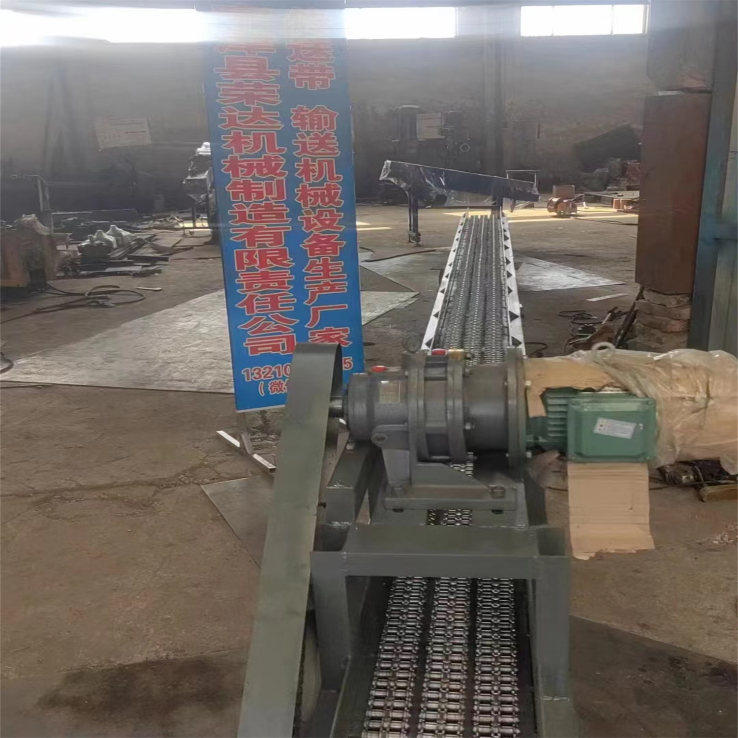 給遼寧錦州北方鐵道機(jī)車車輛配件制造有限公司做的傳送帶輸送機(jī)完工發(fā)貨 鏈條輸送機(jī)長度7.2米 有效寬度250毫米 高度450毫米 速度100-150米每分鐘 3千瓦變頻調(diào)速