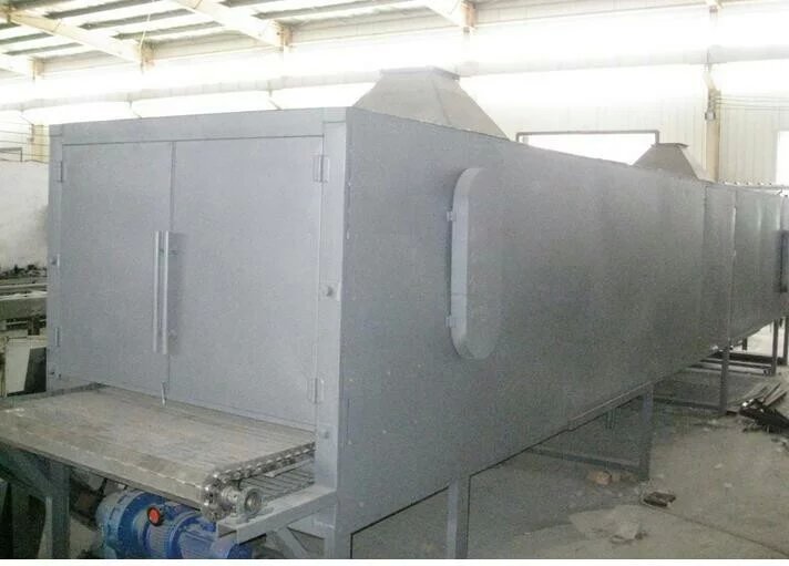 網(wǎng)帶式烘干機(jī)將所要處理的物料通過適當(dāng)?shù)匿伭蠙C(jī)構(gòu),如星型布料器,擺動(dòng)帶,粉碎機(jī)或造粒機(jī),分布在輸送帶上,輸送帶通過一個(gè)或者幾個(gè)加熱單元組成的通道,每個(gè)加熱單元均配有加熱和循環(huán)系統(tǒng),每一個(gè)通道有一個(gè)或幾個(gè)排濕系統(tǒng),在輸送帶通過時(shí),熱空氣從下往上通過輸送帶上的物料,從而使得物料均勻干燥?;竟ぷ髟硎切枰娓傻奈锪贤ㄟ^提升機(jī)提升到高處,物料北布料器,均勻的分布在烘干機(jī)最上面的一層輸送帶上,輸送帶把物料從機(jī)尾輸送到機(jī)頭,然后物料滑落到第二層,物料從機(jī)頭又被輸送到機(jī)尾,物料又滑落到第三層,物料從機(jī)尾再次被輸送到機(jī)頭,如此反復(fù)的輸送,物料在被輸送的同時(shí)進(jìn)行熱風(fēng)烘干,物料最后被最下面的一層不銹鋼網(wǎng)帶輸送出烘干機(jī),這時(shí)物料被烘干到客戶需要的程度。然后進(jìn)行輸送降溫或者立即裝袋處理。網(wǎng)帶烘干機(jī)是一種連續(xù)的,批量生產(chǎn)的帶式干燥設(shè)備,主要有電加熱,燃煤加熱,蒸汽加熱,導(dǎo)熱油加熱,燃天然氣加熱,熱風(fēng)加熱等等。其主要原理是將物料均勻的平鋪在網(wǎng)帶上,網(wǎng)帶采用12-60目的鋼絲網(wǎng)帶,由傳動(dòng)裝置拖動(dòng)在干燥機(jī)內(nèi)往復(fù)運(yùn)行,熱風(fēng)在物料間穿流而過,水蒸氣從排濕孔中排出,從而達(dá)到干燥的目的,箱體長度有標(biāo)準(zhǔn)段組合而成,為了節(jié)約場(chǎng)地,可將烘干機(jī)分成多層式,常見的有二室三層,二室五層,長度4-60米,有效寬帶0.6-3.0米。網(wǎng)帶烘干機(jī)由保溫隧道,網(wǎng)帶,傳動(dòng)裝置,進(jìn)風(fēng)出風(fēng)管道,加熱源,鼓風(fēng)機(jī),排濕風(fēng)機(jī)等。網(wǎng)帶的線速視物料的種類和含水量而定。風(fēng)流向采用負(fù)壓,多孔進(jìn)風(fēng)保證烘干面積,風(fēng)流風(fēng)速分布均勻,提高烘干效果。要想得到最佳的烘干效果和合適的產(chǎn)量,物料的含水量和網(wǎng)帶的線速度,風(fēng)流量和風(fēng)溫,都得必須適當(dāng),合理,有機(jī)結(jié)合。