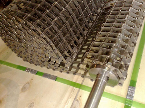 馬蹄鏈又稱長城網(wǎng),由扁平金屬片和圓金屬絲所組成,網(wǎng)帶自重輕,網(wǎng)孔空隙大,網(wǎng)面平整,運(yùn)行平穩(wěn),不會走偏。可作洗滌、干燥、冷卻、熱處理的輸送線。