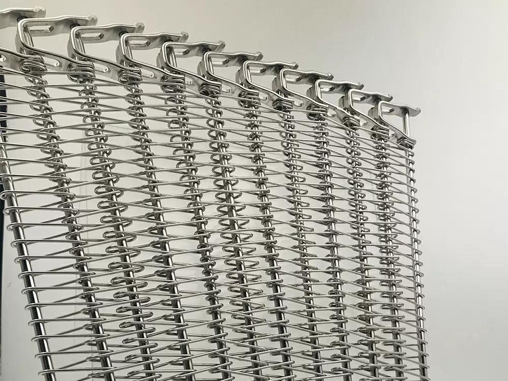 螺旋網(wǎng)采用高抗拉不銹鋼絲經(jīng)進口數(shù)控網(wǎng)帶成型機加工生產(chǎn),網(wǎng)面強硬耐用,不易變形。網(wǎng)面平整,焊接牢固,轉(zhuǎn)彎性能好,可以實現(xiàn) 180度和360度的轉(zhuǎn)彎??梢猿休d較重的壓力和拉力,維修和拆卸極為方便,可以根據(jù)應(yīng)用設(shè)計網(wǎng)面有絲網(wǎng),網(wǎng)面無絲網(wǎng),網(wǎng)帶兩側(cè)加裝擋板或者網(wǎng)帶中間加裝鏈條。