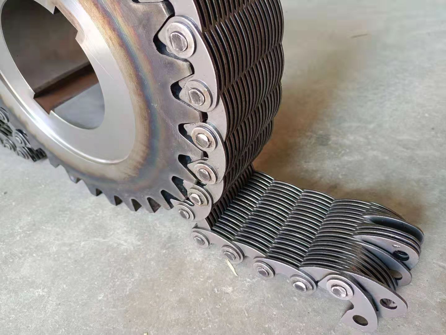 無(wú)聲鏈 齒形鏈輪 無(wú)聲鏈:也叫齒形鏈條,采用無(wú)聲齒形鏈輪帶動(dòng)運(yùn)轉(zhuǎn)傳動(dòng)。寧津縣榮達(dá)機(jī)械制造有限責(zé)任公司定做各種無(wú)聲齒形鏈條,無(wú)聲齒形鏈輪。我們根據(jù)客戶自己的情況,客戶選型成功,我們根據(jù)客戶的數(shù)據(jù)非標(biāo)定做各種齒形鏈條和無(wú)聲齒形鏈輪。齒形鏈條節(jié)距4.7625,6.35 9.525 12.7 15.875 19.05 25.4 31.75 38.1毫米的鏈條都能做,無(wú)聲齒形鏈輪根據(jù)客戶的齒數(shù)和外徑,內(nèi)孔,鍵槽定做。無(wú)聲齒形鏈條的獨(dú)特優(yōu)點(diǎn):高速,無(wú)噪音,高承載傳動(dòng)能力,轉(zhuǎn)矩大等等優(yōu)點(diǎn),逐漸取代精密滾子鏈條和同步帶。