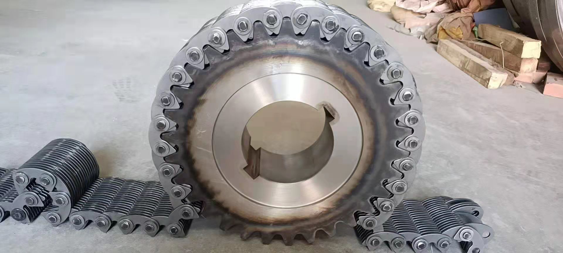 無聲鏈 齒形鏈輪 無聲鏈:也叫齒形鏈條,采用無聲齒形鏈輪帶動運轉(zhuǎn)傳動。寧津縣榮達(dá)機械制造有限責(zé)任公司定做各種無聲齒形鏈條,無聲齒形鏈輪。我們根據(jù)客戶自己的情況,客戶選型成功,我們根據(jù)客戶的數(shù)據(jù)非標(biāo)定做各種齒形鏈條和無聲齒形鏈輪。齒形鏈條節(jié)距4.7625,6.35 9.525 12.7 15.875 19.05 25.4 31.75 38.1毫米的鏈條都能做,無聲齒形鏈輪根據(jù)客戶的齒數(shù)和外徑,內(nèi)孔,鍵槽定做。無聲齒形鏈條的獨特優(yōu)點:高速,無噪音,高承載傳動能力,轉(zhuǎn)矩大等等優(yōu)點,逐漸取代精密滾子鏈條和同步帶。
