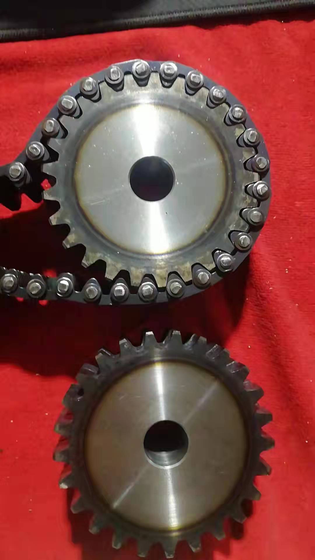 齒形鏈又稱無聲鏈(Silent Chain),屬于傳動鏈的一種形式。我國的國家標準為:GB/T10855-2003《齒形鏈和鏈輪》。齒形鏈是由一系列的齒鏈板和導板交替裝配且銷軸或組合的鉸接元件連接組成,相鄰節(jié)距間為鉸連節(jié)。根據(jù)導向型式可分為:外導式齒形鏈、內(nèi)導式齒形鏈和雙內(nèi)導齒形鏈.齒形鏈又稱無聲鏈,屬于傳動鏈的一種形式。齒形鏈是一種應用廣泛的重要機械基礎件,主要用在高速、重載、低噪音、大中心距的工況下,其傳動性能優(yōu)于齒形帶傳動、齒輪傳動以及磙子鏈傳動,以成為眾多行業(yè)首選對傳動形式之一,以嚙合形式分可分為內(nèi)嚙合齒形鏈、外嚙合齒形鏈和內(nèi)外復合嚙合齒形鏈,其中內(nèi)外復合嚙合齒形鏈的噪音最小,應用也最廣泛。主要特點:1.噪音小 齒形鏈是通過工作鏈板與鏈輪齒的漸開線齒形進行嚙合傳遞動力,與滾子鏈和套筒鏈相比其多邊形效應明顯降低,沖擊小、運動平穩(wěn)、嚙合噪音較小。2.可靠性較高 齒形鏈的鏈節(jié)是多片式結(jié)構(gòu),當其中個別鏈片在工作中遭到破壞時并不影響整根鏈條的工作,使人們能夠及時發(fā)現(xiàn)并更換,如需增加承載能力只需在寬度方向較小尺寸(增加鏈片排數(shù))。3.運動精度高 齒形鏈各鏈節(jié)磨損伸長均勻,可保持較高的運動精度。齒形鏈條主要應用范圍:齒形鏈主要應用在紡織機械和無心磨床,傳送帶機械設備。齒形鏈條的種類:CL06,CL08,CL10,CL12,CL16,CL20。根據(jù)導向分:內(nèi)導的齒形鏈條和外導的齒形鏈條,內(nèi)外復合的齒形鏈條
