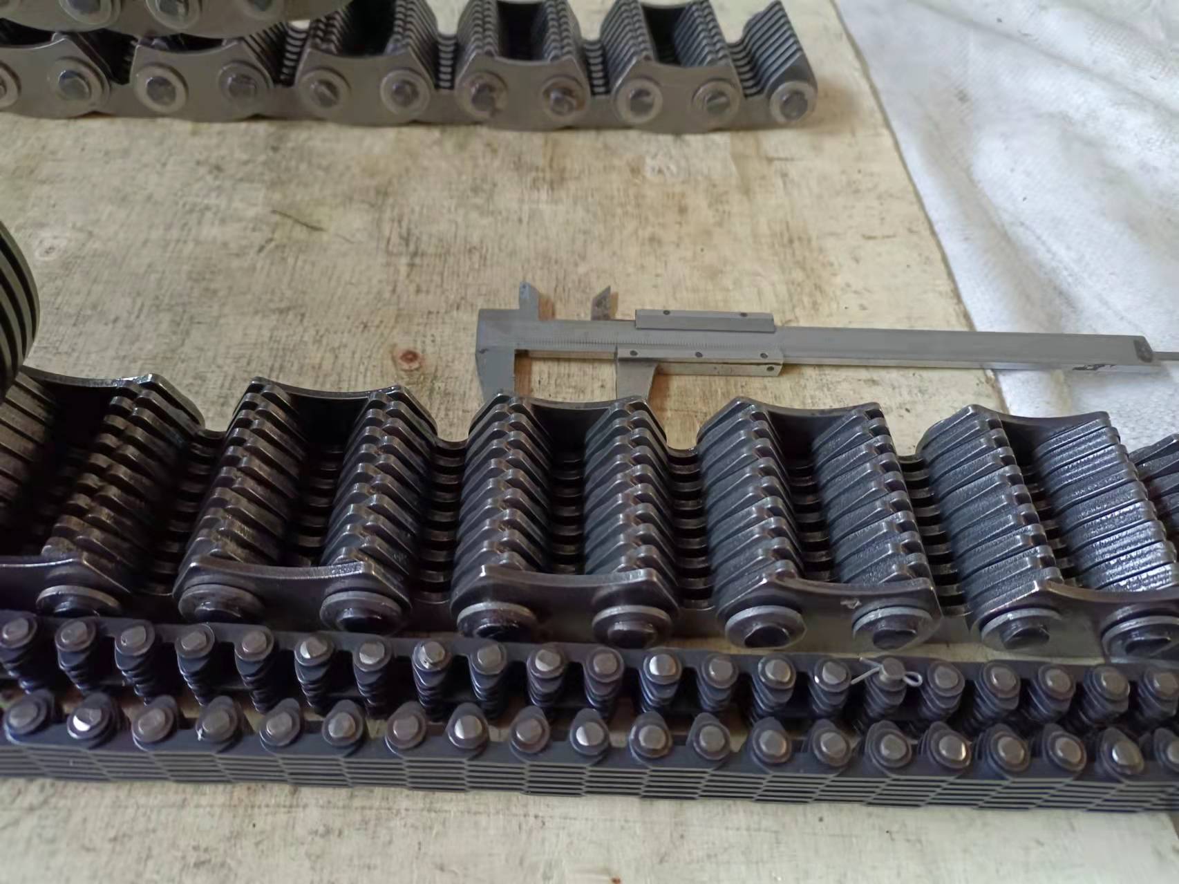 輸送機(jī)齒形鏈條經(jīng)常是使用平背鏈片,以此形成一個(gè)平滑的輸送表面,鏈條有抗污染的鉸鏈設(shè)計(jì),輸送機(jī)齒形鏈條頻繁應(yīng)用在輸送熱玻璃器皿和其他需要輸送機(jī)下方送風(fēng)以及要求傳送格外平穩(wěn)的工況。