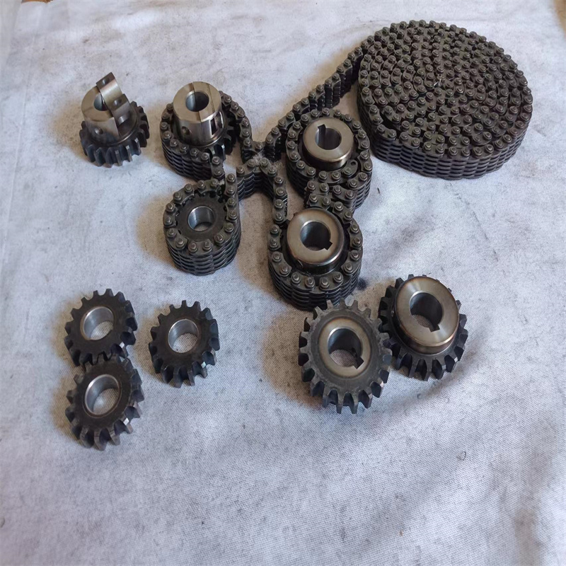無聲鏈 齒形鏈輪 無聲鏈:也叫齒形鏈條,采用無聲齒形鏈輪帶動運轉(zhuǎn)傳動。寧津縣榮發(fā)齒輪廠定做各種無聲齒形鏈條,無聲齒形鏈輪。我們根據(jù)客戶自己的情況,客戶選型成功,我們根據(jù)客戶的數(shù)據(jù)非標定做各種齒形鏈條和無聲齒形鏈輪。齒形鏈條節(jié)距4.7625,6.35 9.525 12.7 15.875 19.05 25.4 31.75 38.1毫米的鏈條都能做,無聲齒形鏈輪根據(jù)客戶的齒數(shù)和外徑,內(nèi)孔,鍵槽定做。無聲齒形鏈條的獨特優(yōu)點:高速,無噪音,高承載傳動能力,轉(zhuǎn)矩大等等優(yōu)點,逐漸取代精密滾子鏈條和同步帶。