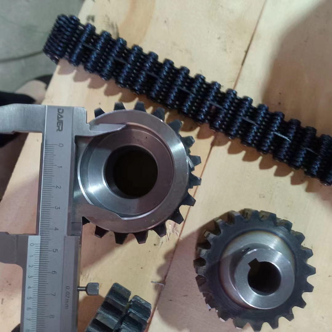 無聲鏈 齒形鏈輪 無聲鏈:也叫齒形鏈條,采用無聲齒形鏈輪帶動運(yùn)轉(zhuǎn)傳動。寧津縣榮達(dá)機(jī)械制造有限責(zé)任公司定做各種無聲齒形鏈條,無聲齒形鏈輪。我們根據(jù)客戶自己的情況,客戶選型成功,我們根據(jù)客戶的數(shù)據(jù)非標(biāo)定做各種齒形鏈條和無聲齒形鏈輪。齒形鏈條節(jié)距4.7625,6.35 9.525 12.7 15.875 19.05 25.4 31.75 38.1毫米的鏈條都能做,無聲齒形鏈輪根據(jù)客戶的齒數(shù)和外徑,內(nèi)孔,鍵槽定做。無聲齒形鏈條的獨(dú)特優(yōu)點(diǎn):高速,無噪音,高承載傳動能力,轉(zhuǎn)矩大等等優(yōu)點(diǎn),逐漸取代精密滾子鏈條和同步帶。