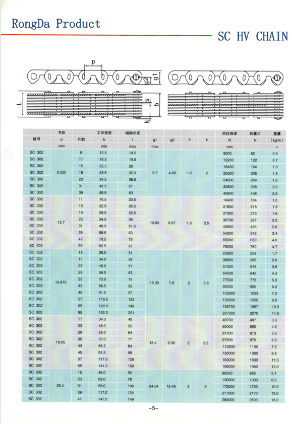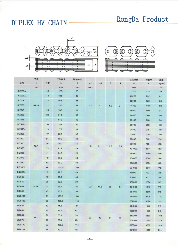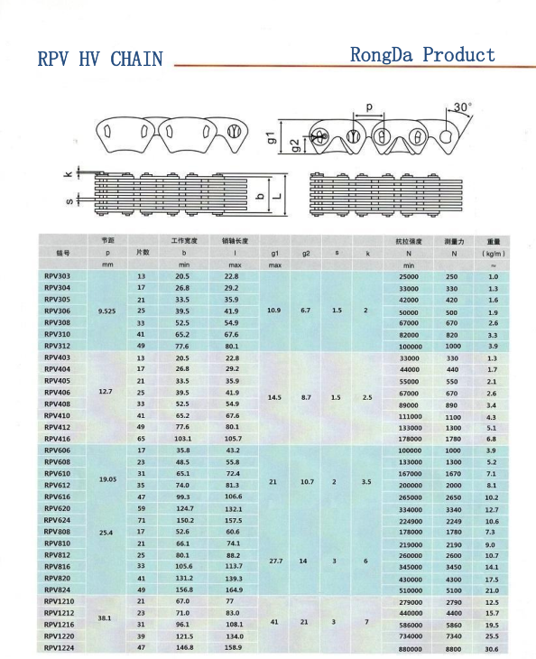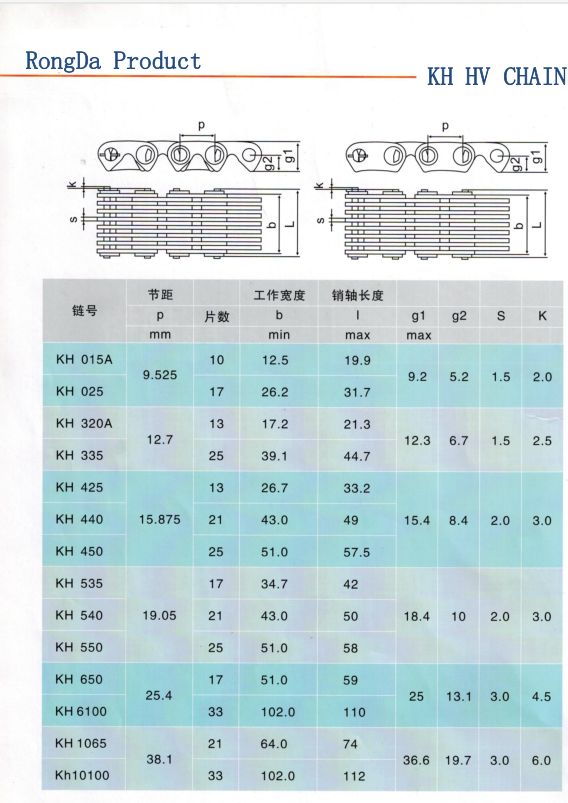 齒形鏈條簡(jiǎn)介:齒形鏈又稱無聲鏈(Silent Chain),屬于傳動(dòng)鏈的一種形式。我國的國家標(biāo)準(zhǔn)為:GB/T10855-2003《齒形鏈和鏈輪》。齒形鏈?zhǔn)怯梢幌盗械凝X鏈板和導(dǎo)板交替裝配且銷軸或組合的鉸接元件連接組成,相鄰節(jié)距間為鉸連節(jié)。根據(jù)導(dǎo)向型式可分為:外導(dǎo)式齒形鏈、內(nèi)導(dǎo)式齒形鏈和雙內(nèi)導(dǎo)齒形鏈.齒形鏈又稱無聲鏈,屬于傳動(dòng)鏈的一種形式。齒形鏈?zhǔn)且环N應(yīng)用廣泛的重要機(jī)械基礎(chǔ)件,主要用在高速、重載、低噪音、大中心距的工況下,其傳動(dòng)性能優(yōu)于齒形帶傳動(dòng)、齒輪傳動(dòng)以及磙子鏈傳動(dòng),以成為眾多行業(yè)對(duì)傳動(dòng)形式之一,以嚙合形式分可分為內(nèi)嚙合齒形鏈、外嚙合齒形鏈和內(nèi)外復(fù)合嚙合齒形鏈,其中內(nèi)外復(fù)合嚙合齒形鏈的噪音小,應(yīng)用也廣泛。