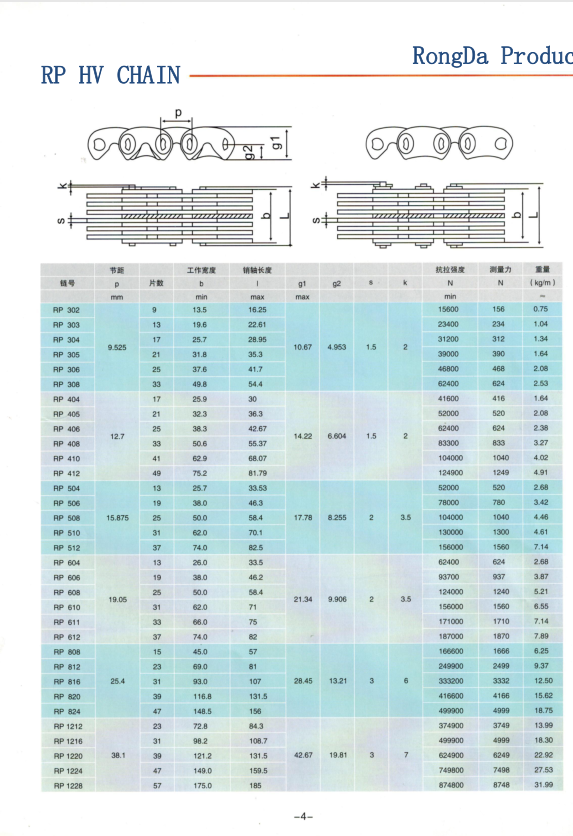 德國標(biāo)準(zhǔn)DIN 8190 齒形鏈條 齒輪 本標(biāo)準(zhǔn)規(guī)定了齒形鏈條的鏈輪齒形,齒輪尺寸,鏈輪具有付變位系數(shù)的漸開線齒廓,嚙合角為30° ,能使被磨損伸長的鏈條與鏈輪的嚙合得到較好的補(bǔ)償。 GB/T 10855-2003 傳動(dòng)用齒形鏈條及鏈輪 等同采用ANSI B 29.2M-1982 齒形鏈條ASME B29.2M-1982 齒形鏈條和齒輪 Inverted Tooth silent chain and Sprockets 齒形鏈條關(guān)鍵詞:DIN 8190 齒形鏈條 德國標(biāo)準(zhǔn)齒形鏈條 30° 壓力角滾動(dòng)鉸接式齒形鏈條 Inverted tooth silent chain with 30° pressure angle 無聲齒形鏈條長度公差:無聲齒形鏈條測(cè)量長度最小為50個(gè)鏈條節(jié)距,未經(jīng)潤滑,鏈條在測(cè)量力作用下,其鏈條長度偏差為被測(cè)量鏈條總長度的正0.2%。測(cè)量力為鏈條抗拉強(qiáng)度的1%。