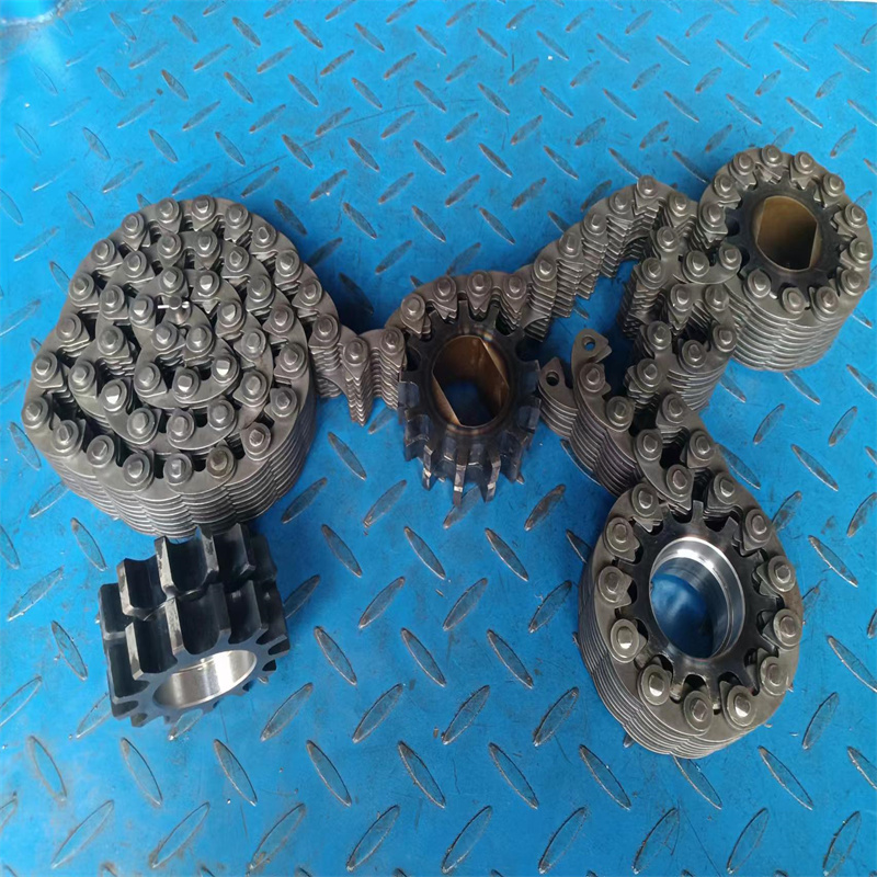 無聲鏈 齒形鏈輪 無聲鏈:也叫齒形鏈條,采用無聲齒形鏈輪帶動(dòng)運(yùn)轉(zhuǎn)傳動(dòng)。寧津縣榮發(fā)齒輪廠定做各種無聲齒形鏈條,無聲齒形鏈輪。我們根據(jù)客戶自己的情況,客戶選型成功,我們根據(jù)客戶的數(shù)據(jù)非標(biāo)定做各種齒形鏈條和無聲齒形鏈輪。齒形鏈條節(jié)距4.7625,6.35 9.525 12.7 15.875 19.05 25.4 31.75 38.1毫米的鏈條都能做,無聲齒形鏈輪根據(jù)客戶的齒數(shù)和外徑,內(nèi)孔,鍵槽定做。無聲齒形鏈條的獨(dú)特優(yōu)點(diǎn):高速,無噪音,高承載傳動(dòng)能力,轉(zhuǎn)矩大等等優(yōu)點(diǎn),逐漸取代精密滾子鏈條和同步帶。