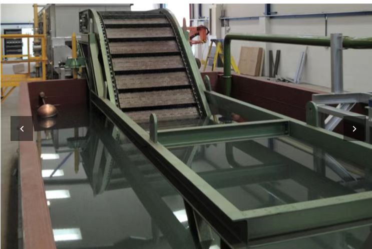 采用鏈板輸送機(jī) ,鏈條網(wǎng)帶輸送機(jī)放在水槽里面用來把水槽里面的產(chǎn)品提升出來