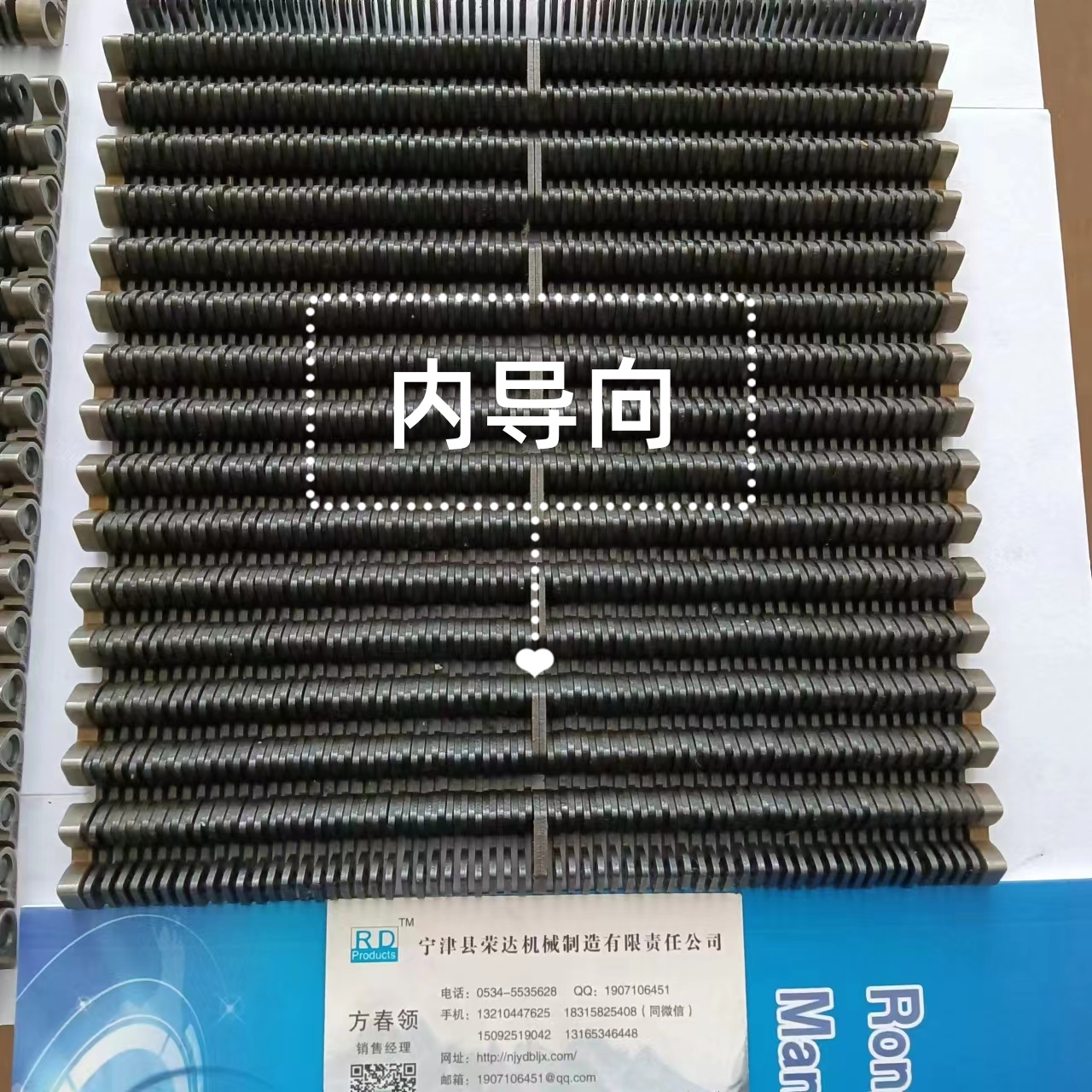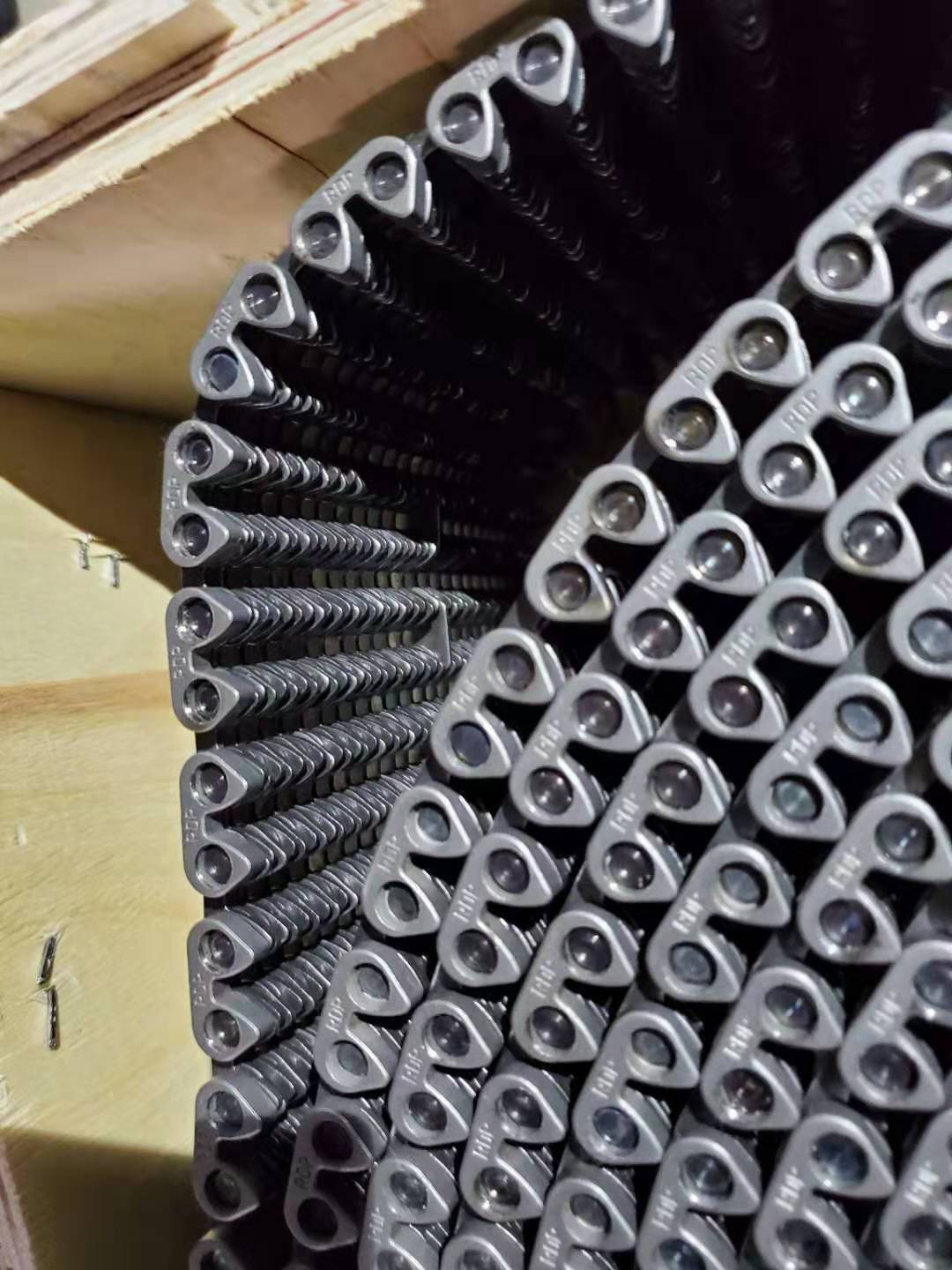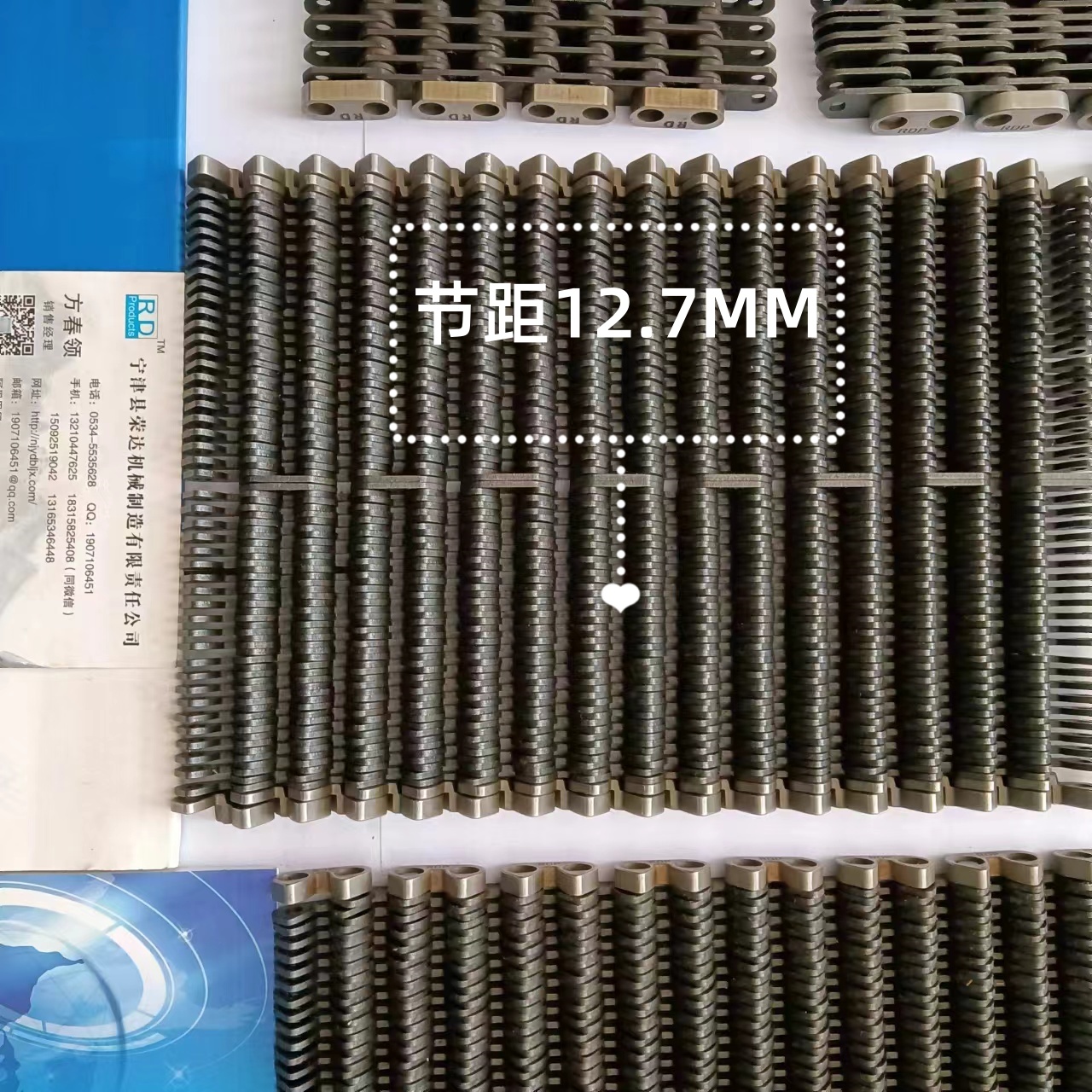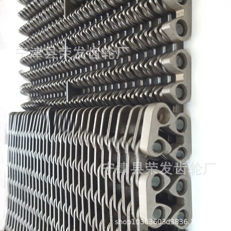 無聲齒形鏈帶:采用鏈條片和銷軸于墊圈做成的輸送用傳送帶,外形寬度非標定做也有好多規(guī)格的現(xiàn)貨,鏈帶是用在玻璃廠輸送玻璃瓶罐器皿日用玻璃器皿的,也有的時候用在其他的輸送機械上,用來輸送其他產(chǎn)品,優(yōu)點就是平整,輸送面平穩(wěn),輸送高腳杯,不會倒瓶,用來輸送高溫玻璃制品,用于玻璃機械行列式制瓶機上,橫向輸瓶機,我們還研發(fā)了轉(zhuǎn)彎的拐彎的無聲齒形鏈帶,用于縱向拐彎橫向結(jié)合的輸送機上。無聲齒形鏈帶材質(zhì)有碳鋼的 錳鋼的 合金鋼的 ,節(jié)距有12.7毫米 25.4毫米 單軸的和雙軸的,無齒形鏈帶從外形看有內(nèi)導向和外導向,有帶保護帽的和不帶保護帽的,無聲齒形鏈帶有帶尖的和不帶尖的.
