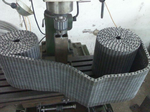 2015年09月23日給浙江嘉興玻璃制品廠做了150米無聲齒形鏈,齒鏈帶,網(wǎng)帶。節(jié)距12.7毫米,鏈寬200毫米,內(nèi)導(dǎo)向,焊帽的,齒形鏈,無聲鏈帶,網(wǎng)帶是用在玻璃廠玻璃機械行列式制瓶機和和橫向輸送機,輸瓶機上的。用來輸送玻璃制品和陶瓷制品,高溫玻璃胚胎。