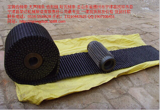 無聲齒形鏈帶:一種輸送帶,是玻璃廠或者陶瓷制品廠用來輸送玻璃制品器皿,玻璃容器或者陶瓷廠用來輸送陶瓷瓶罐,陶瓷制品的輸送帶。利用無聲鏈輪帶動,具有無噪音,耐磨,抗拉伸,輸送面平穩(wěn),耐高溫。