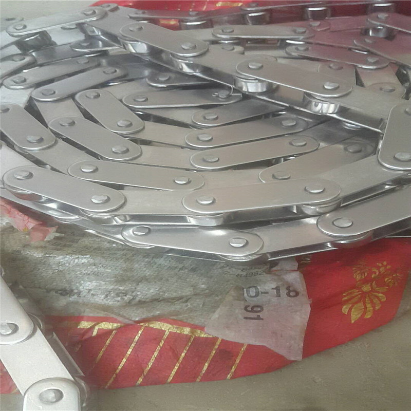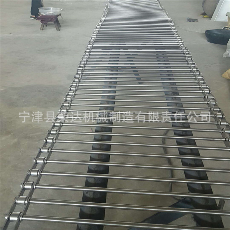 這是一種利用鏈條和支軸做成的傳送輸送帶。先把支軸穿軸的兩頭車細,然后兩邊鑲上鏈條,最后用墊圈把支軸焊上或用開口銷銷上,這就是鏈桿式輸送帶。鏈條的節(jié)距和材質(zhì)和滾子的大小各種都有,支軸的粗細和材質(zhì)和直徑和長度有多種型號供選擇。