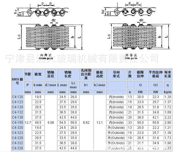 C4齒形鏈條是直行的背部,CL08齒形鏈條是戶型的。齒形鏈條分直行背部和弧形齒形鏈條。都是節(jié)距12.7毫米。