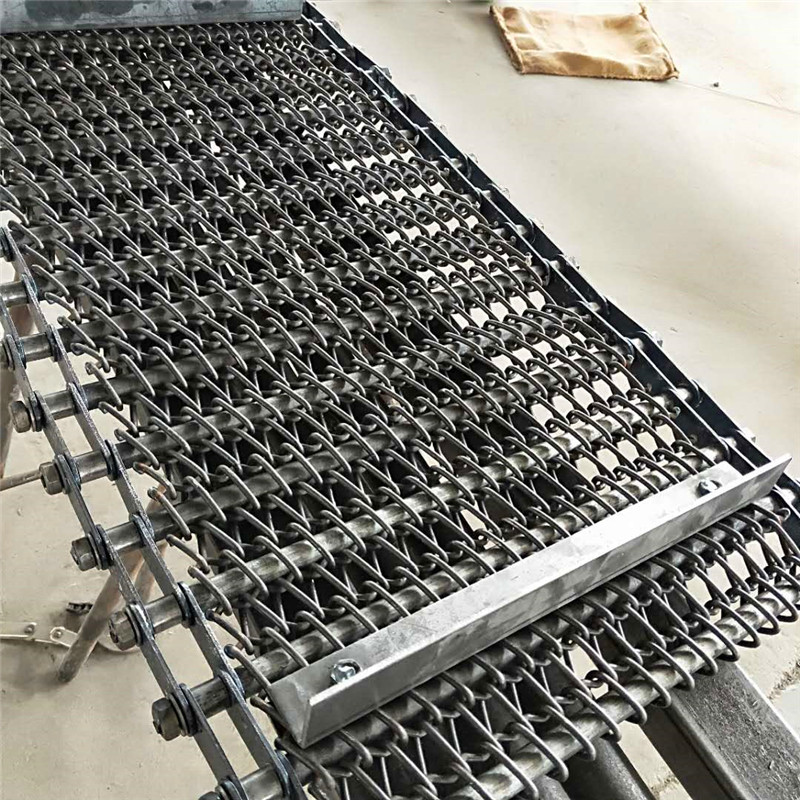 鏈條式網(wǎng)帶由一般的輸送網(wǎng)帶兩側(cè)加裝鏈條及橫向支撐桿而成,鏈輪傳動,網(wǎng)帶寬帶固定不變形。調(diào)整網(wǎng)帶不同的節(jié)距,即可安裝不同形式的鏈條,容易安裝網(wǎng)帶的附屬配件,如擋板,側(cè)翼。。。。。網(wǎng)面平整,可承載較重的壓力和拉力,通風(fēng)透氣性能好,節(jié)能環(huán)保,網(wǎng)面潔凈無毒,而且容易清洗,維修和拆卸極為方便,鏈條式網(wǎng)帶被廣泛用于食品速凍,蔬菜除沙,清洗殺菌,殺菌預(yù)煮,烘烤,干燥,電子行業(yè)生產(chǎn)線。