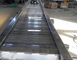 6、運行平穩(wěn)可靠;鏈板輸送機:又叫鏈板傳送機,鏈板線,鏈板傳送帶。是一種利用循環(huán)往復的鏈條作為牽引動力,以金屬板作為輸送承載體的一種輸送機械設備。國內市場上有兩種鏈板輸送機,一種是用鏈條,支軸和金屬板組成的輸送鏈板做成的輸送機;一種是用帶彎板的鏈條和金屬板組成的金屬板輸送帶做成的鏈板輸送機,另一種是平頂鏈鏈板輸送機。