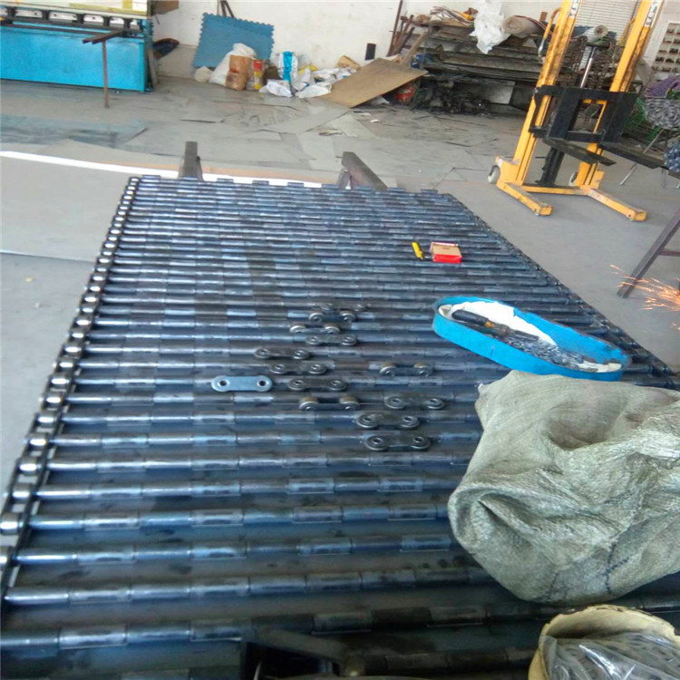 鏈板輸送帶 全部是鐵的 支軸總長(zhǎng)度900毫米 鏈條50.8毫米 板厚2.5毫米 14毫米軸