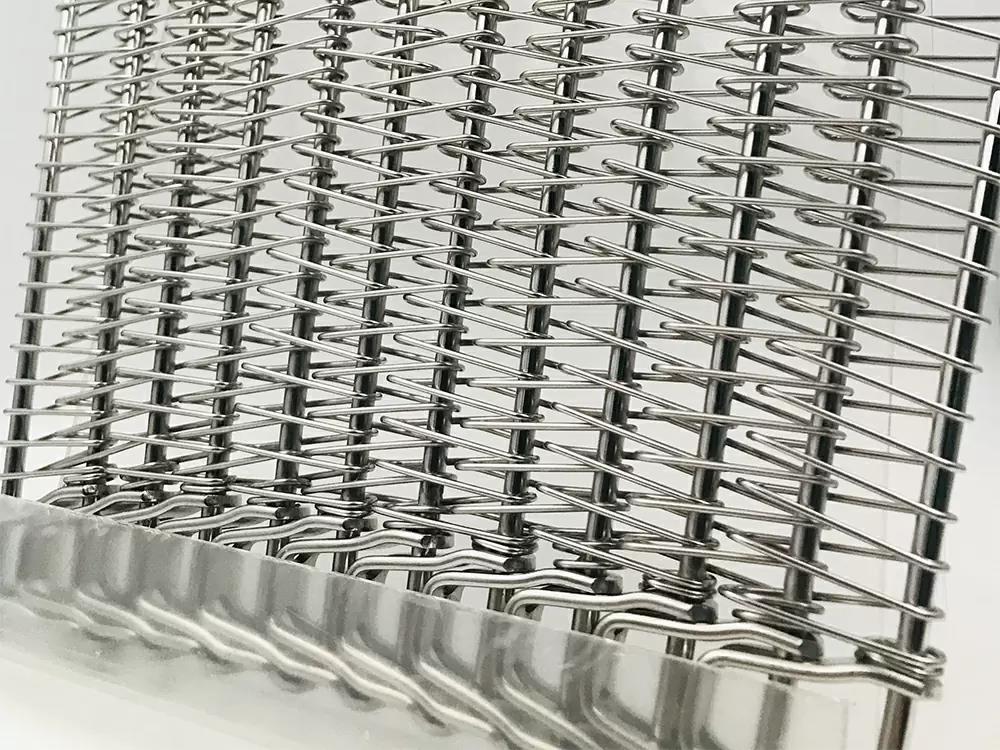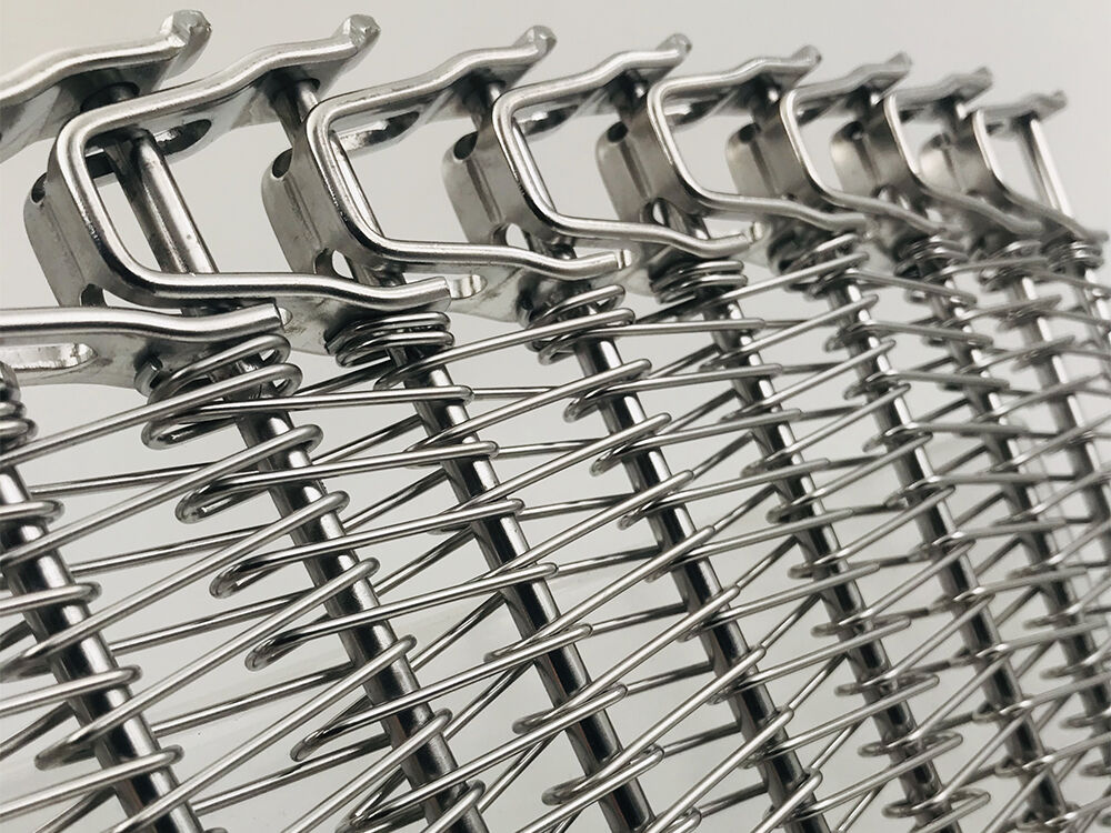 螺旋網(wǎng)采用高抗拉不銹鋼絲經(jīng)進口數(shù)控網(wǎng)帶成型機加工生產(chǎn),網(wǎng)面強硬耐用,不易變形。網(wǎng)面平整,焊接牢固,轉(zhuǎn)彎性能好,可以實現(xiàn) 180度和360度的轉(zhuǎn)彎??梢猿休d較重的壓力和拉力,維修和拆卸極為方便,可以根據(jù)應(yīng)用設(shè)計網(wǎng)面有絲網(wǎng),網(wǎng)面無絲網(wǎng),網(wǎng)帶兩側(cè)加裝擋板或者網(wǎng)帶中間加裝鏈條。