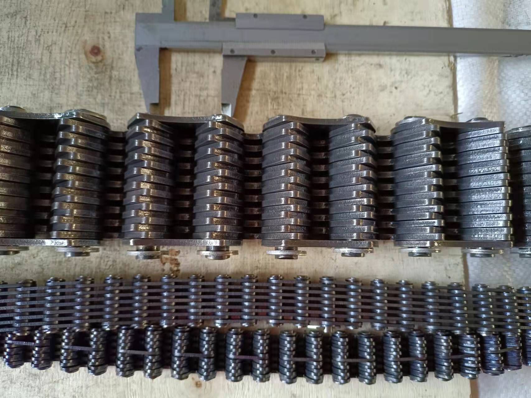 輸送機(jī)齒形鏈條經(jīng)常是使用平背鏈片,以此形成一個(gè)平滑的輸送表面,鏈條有抗污染的鉸鏈設(shè)計(jì),輸送機(jī)齒形鏈條頻繁應(yīng)用在輸送熱玻璃器皿和其他需要輸送機(jī)下方送風(fēng)以及要求傳送格外平穩(wěn)的工況。