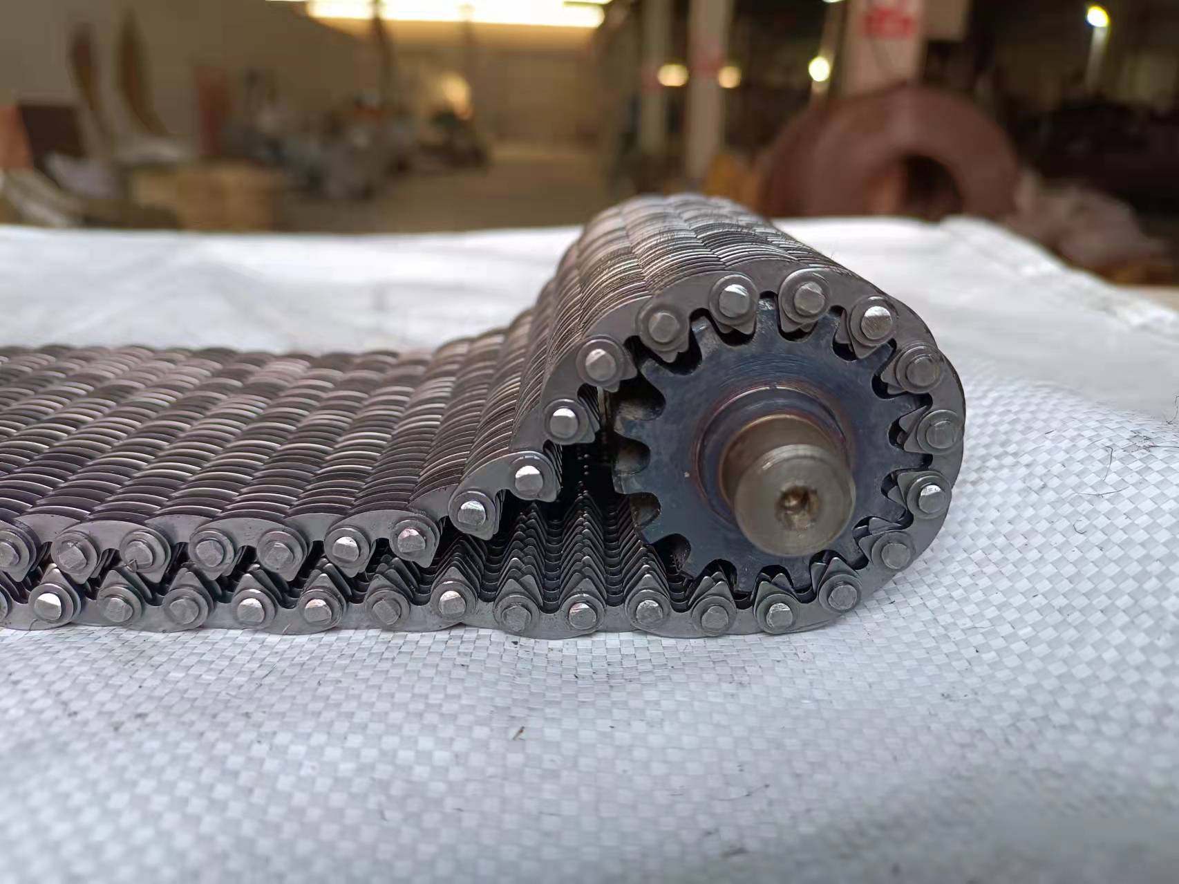 雙銷(xiāo)軸鉸鏈通常用兩個(gè)帶有凸面的銷(xiāo)軸。當(dāng)與鏈輪嚙合時(shí)鉸鏈齒形鏈條兩凸面相對(duì)滾動(dòng)。典型雙銷(xiāo)軸鉸鏈條齒形鏈條。雙銷(xiāo)軸鉸鏈齒形鏈條通過(guò)消除滑動(dòng)極大地減少了摩擦和磨損。雙銷(xiāo)軸鉸鏈條齒形鏈條實(shí)際上也消除了多邊形效應(yīng)影響。銷(xiāo)軸的彎曲表面起一種凸輪作用,節(jié)距在每個(gè)鏈節(jié)嚙合輪齒時(shí)會(huì)稍微增大后再減小,這種節(jié)距變化設(shè)計(jì)平衡了多邊效應(yīng)產(chǎn)生的速度變化