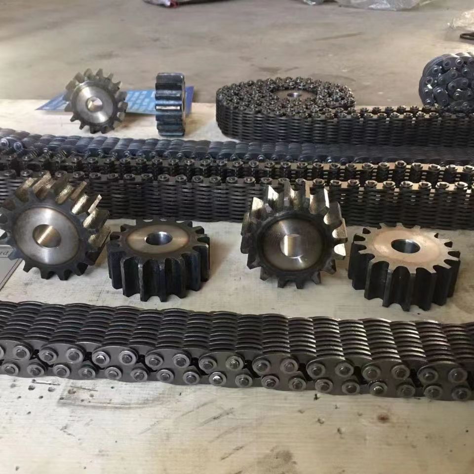 無聲鏈 齒形鏈輪 無聲鏈:也叫齒形鏈條,采用無聲齒形鏈輪帶動運轉(zhuǎn)傳動。寧津縣榮發(fā)齒輪廠定做各種無聲齒形鏈條,無聲齒形鏈輪。我們根據(jù)客戶自己的情況,客戶選型成功,我們根據(jù)客戶的數(shù)據(jù)非標定做各種齒形鏈條和無聲齒形鏈輪。齒形鏈條節(jié)距4.7625,6.35 9.525 12.7 15.875 19.05 25.4 31.75 38.1毫米的鏈條都能做,無聲齒形鏈輪根據(jù)客戶的齒數(shù)和外徑,內(nèi)孔,鍵槽定做。無聲齒形鏈條的獨特優(yōu)點:高速,無噪音,高承載傳動能力,轉(zhuǎn)矩大等等優(yōu)點,逐漸取代精密滾子鏈條和同步帶。