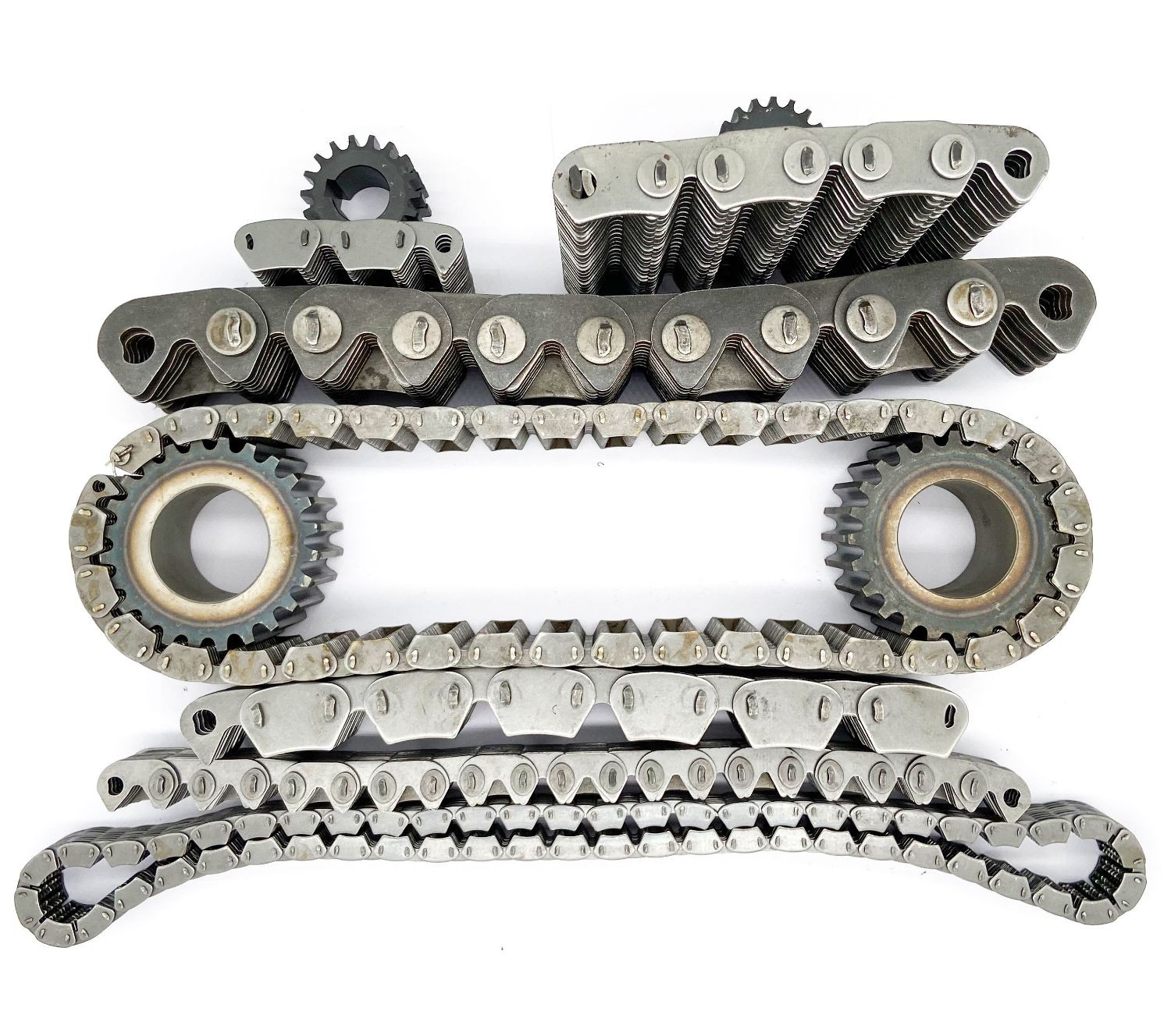 齒形鏈條傳動有著噪音小,可靠性較高,運(yùn)動精度高(其運(yùn)轉(zhuǎn)平滑性強(qiáng)于任何其他類型的鏈條)等比較突出的特點(diǎn),所有齒形鏈條已成為一種應(yīng)用廣泛的重要基礎(chǔ)零件部件。特別是在高速,重載,低噪音要求,大中心距離的工況下,其傳動性能優(yōu)于齒形帶傳動,普通齒輪傳動及滾子鏈條傳動,齒形鏈條已經(jīng)發(fā)展為汽車,機(jī)床,汽輪機(jī),石油機(jī)械,軍用機(jī)械等眾多行業(yè)的傳動類型之一,如機(jī)床主傳動,發(fā)動機(jī)正時傳動及重要的操縱機(jī)構(gòu)等等。另外齒形鏈條在高速運(yùn)轉(zhuǎn)時,往往還要達(dá)到低噪音甚至靜音,所有齒形鏈條在許多場合還叫做靜音鏈條或者無聲鏈條,外導(dǎo)式齒形鏈條(圓銷式)內(nèi)導(dǎo)齒形鏈條滾銷式 雙內(nèi)導(dǎo)齒形鏈條 軸瓦襯瓦式齒形鏈條 雙面嚙合齒形鏈條 帶過渡彎板鏈節(jié)的齒形鏈條 單面齒形鏈條 雙面?zhèn)鲃育X形鏈條 傳動齒形鏈條目前國內(nèi)使用的標(biāo)準(zhǔn),GB/T 10855-2003,Inverted tooth silent chain and sprocketCL12-78N-210齒形鏈條 哈瓦齒形鏈條 鏈輪齒輪